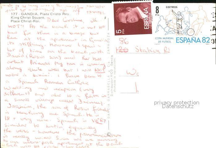 old postcard Gandia Plaza Cristo Rey postalisch gelaufen Erhaltung siehe scans