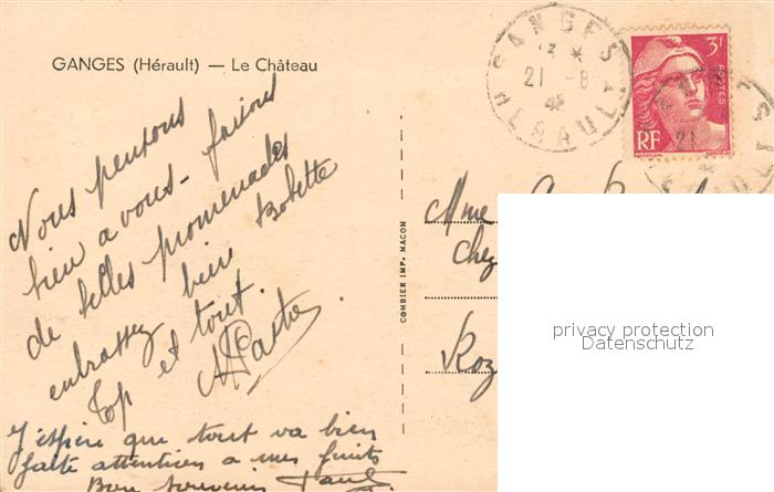 13562654 carte postale Ganges Herault Chateau Schloss postalisch gelaufen Erhaltung siehe scans [FriedD77] KatCode: 11170034334111