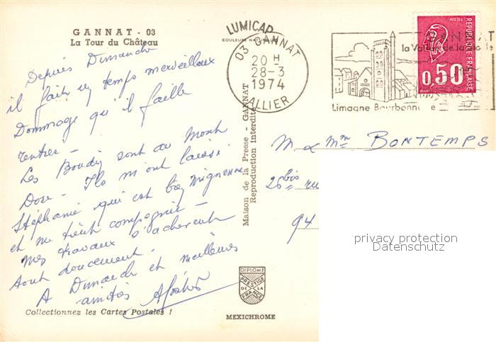 13573017 carte postale Gannat La Tour du Chateau postalisch gelaufen Erhaltung siehe scans [WerneD78] KatCode: 11170003303118