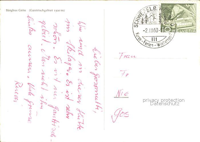 11643169 alte Postkarte Gantrisch Baerghus Groen postalisch gelaufen Erhaltung siehe scans KatCode: 11470410080494