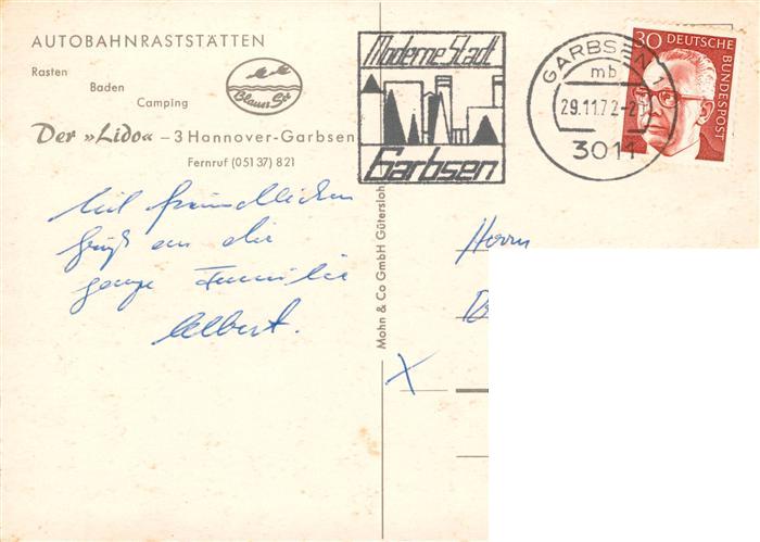 73887641 alte Postkarte Garbsen BAB Raststaette Der Lido postalisch gelaufen Erhaltung siehe scans [WerneD78] KatCode: 11110003241005