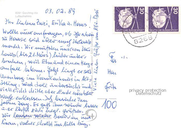 74023847 alte Postkarte Garching Alz Fliegeraufnahme postalisch gelaufen Erhaltung siehe scans [FriedD77] KatCode: 11110009171117
