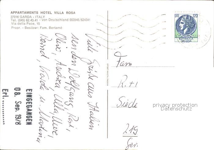 old postcard Garda Lago di Garda Appartaments Hotel Villa Rosa postalisch gelaufen Erhaltung siehe scans