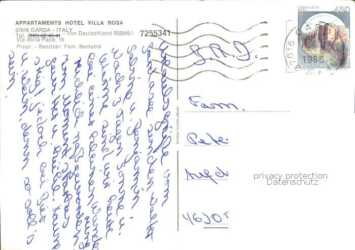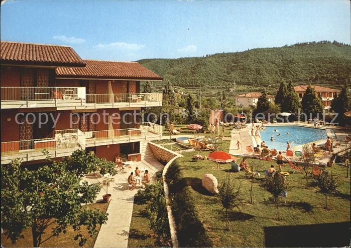 old postcard Garda Lago di Garda Appartments Hotel Villa Rosa Swimming Pool postalisch gelaufen Erhaltung siehe scans