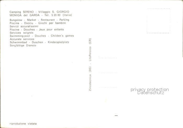 Garda Lago di Garda Camping Sereno Monica sul Garda postalisch nicht gelaufen Erhaltung siehe scans