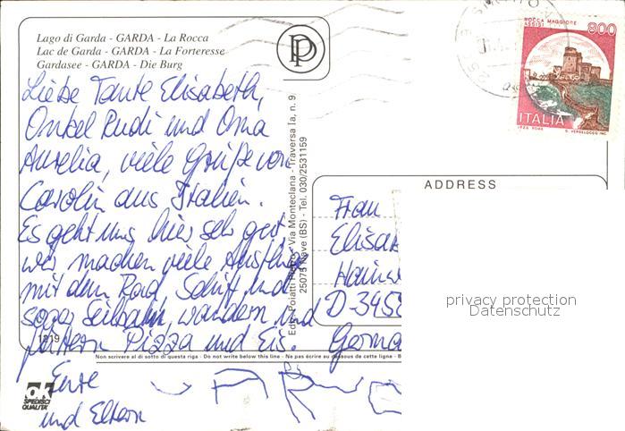 old postcard Garda Lago di Garda Die Burg postalisch gelaufen Erhaltung siehe scans
