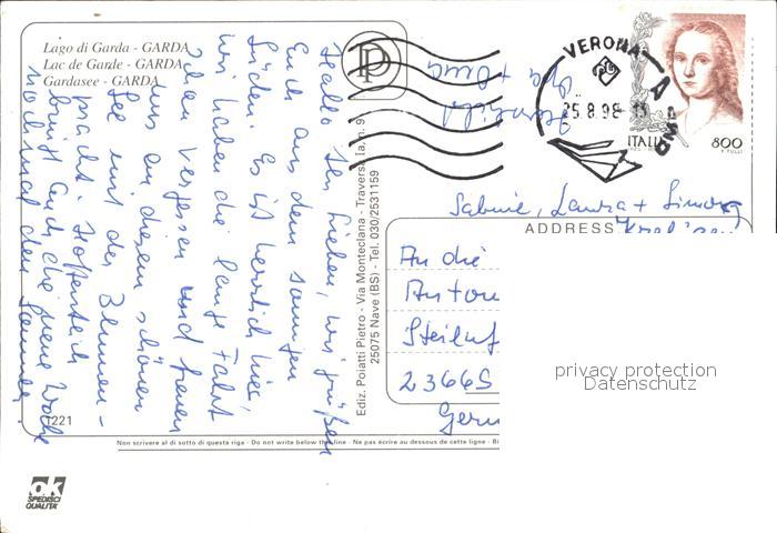 old postcard Garda Lago di Garda Garten postalisch gelaufen Erhaltung siehe scans