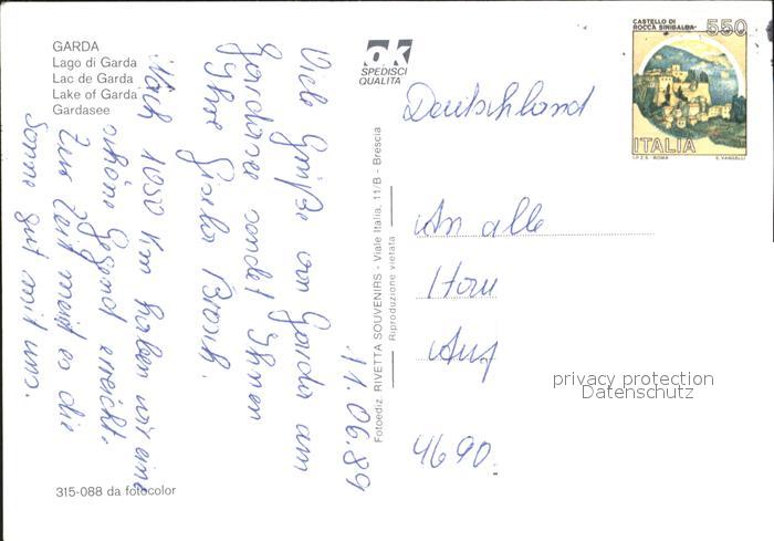 old postcard Garda Lago di Garda Gasse Platz Strassencafe Panorama Gardasee postalisch gelaufen Erhaltung siehe scans