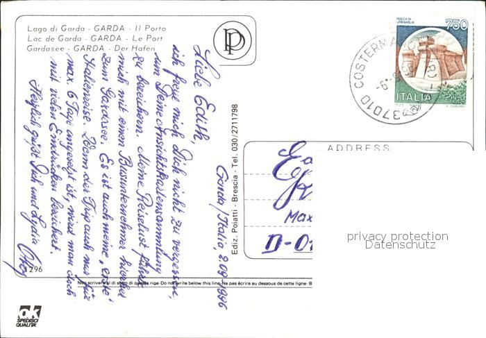 old postcard Garda Lago di Garda Il Porto postalisch gelaufen Erhaltung siehe scans