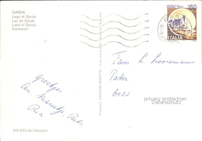 old postcard Garda Lago di Garda Katamaran Panorama Hafenpartie Schloss Promenade postalisch gelaufen Erhaltung siehe scans