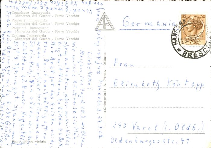old postcard Garda Lago di Garda Manerba del Garda postalisch gelaufen Erhaltung siehe scans
