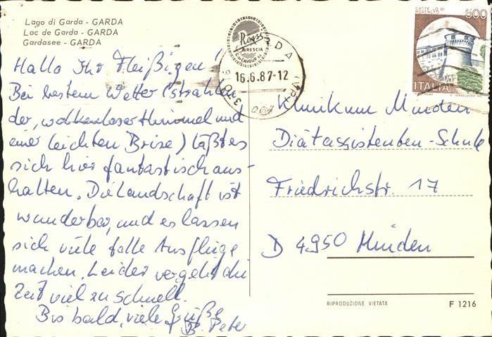 old postcard Garda Lago di Garda Panorama postalisch gelaufen Erhaltung siehe scans