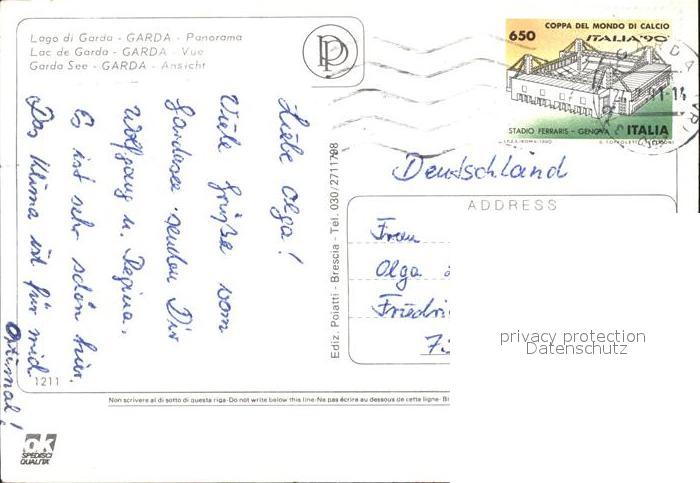 old postcard Garda Lago di Garda Panorama Kueste postalisch gelaufen Erhaltung siehe scans