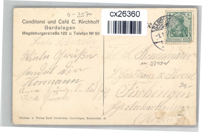 30838196 alte Postkarte Gardelegen Conditorei Cafe Kirchhoff postalisch gelaufen KatCode: 11110015081135
