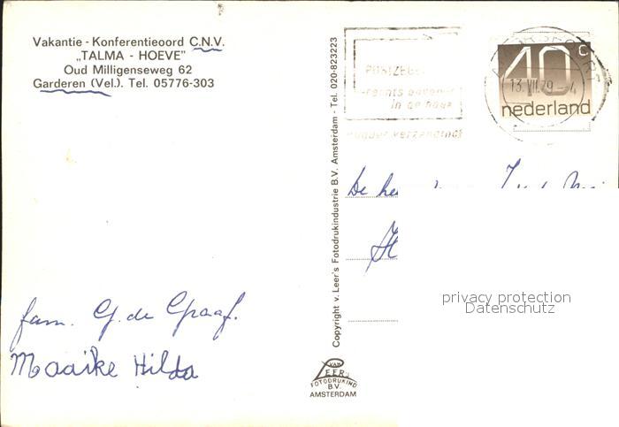 old postcard Garderen Vakantie Konferentieoord Talma Hoeve postalisch gelaufen Erhaltung siehe scans