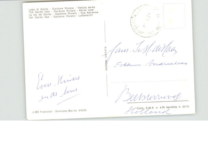 old postcard Gardone Garda Gardone Lago Garda Riviera Fliegeraufnahme Gardasee postalisch gelaufen
