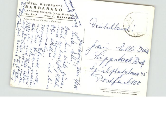 old postcard Gardone Garda Gardone Riviera Lago Garda Hotel Ristorante Barbarano postalisch gelaufen