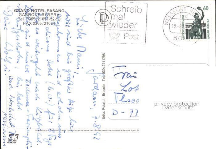 old postcard Gardone Garda Grand Hotel Fasno postalisch gelaufen Erhaltung siehe scans