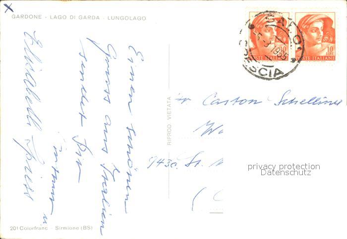 old postcard Gardone Garda Lungolado postalisch gelaufen Erhaltung siehe scans