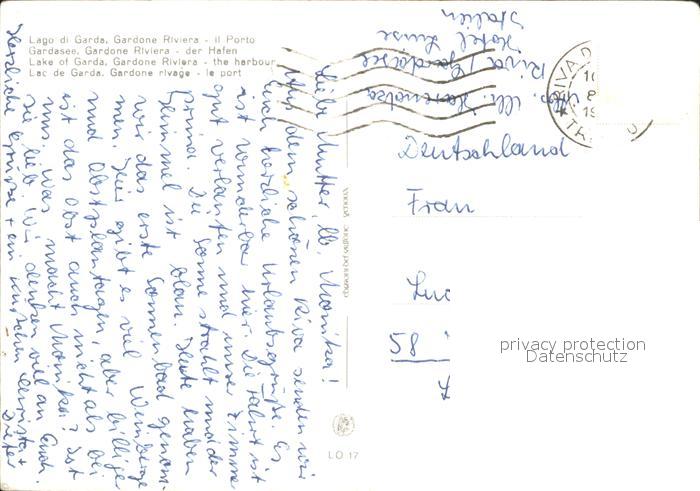 old postcard Gardone Garda Porto Hafen Gardasee postalisch gelaufen Erhaltung siehe scans