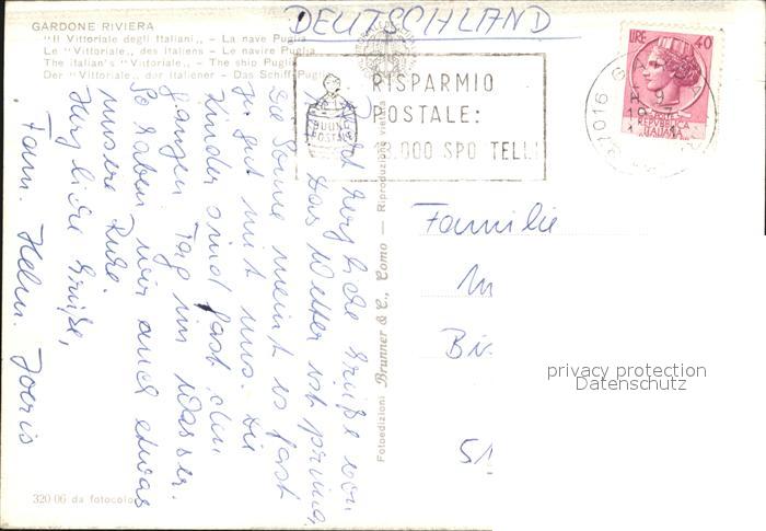 old postcard Gardone Garda Schiff Puglia postalisch gelaufen Erhaltung siehe scans