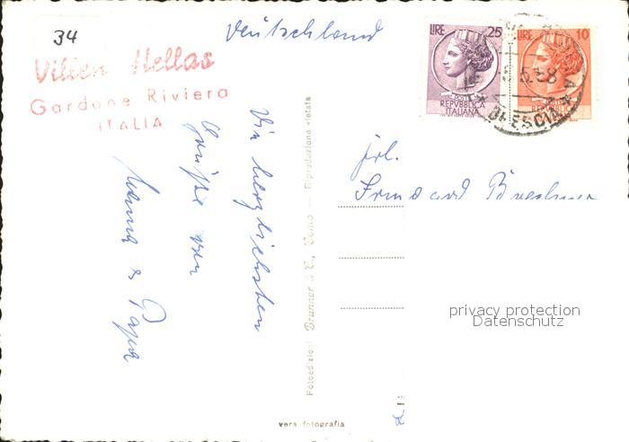 old postcard Gardone Garda Villen Hellas postalisch gelaufen Erhaltung siehe scans