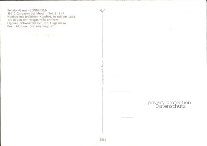 Gargazon Gargazzone Pension Garni Sonnheim postalisch nicht gelaufen Erhaltung siehe scans
