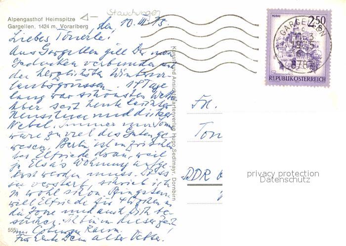 72699906 alte Postkarte Gargellen Vorarlberg Alpengasthof Heimspitze Nachtaufnahme postalisch gelaufen Erhaltung siehe scans [FriedD77] KatCode: 11390