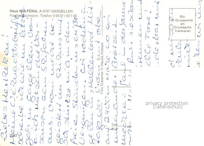 73613125 Gargellen Vorarlberg Gaestehaus Pension Haus Wulfenia Wintersportplatz Alpen postalisch nicht gelaufen Erhaltung siehe scans [FriedD77] KatCode: 11390