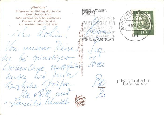 72614400 alte Postkarte GARMISCH-PARTENKIRCHEN Bayern Almhuette Berggasthof am Suedhang des Kramers postalisch gelaufen Erhaltung siehe scans [LiesaD40] KatCode: 11110009180117