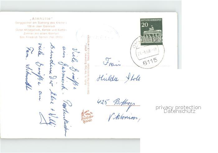 72037068 alte Postkarte GARMISCH-PARTENKIRCHEN Bayern Almhuette postalisch gelaufen Erhaltung siehe scans KatCode: 11110009180117