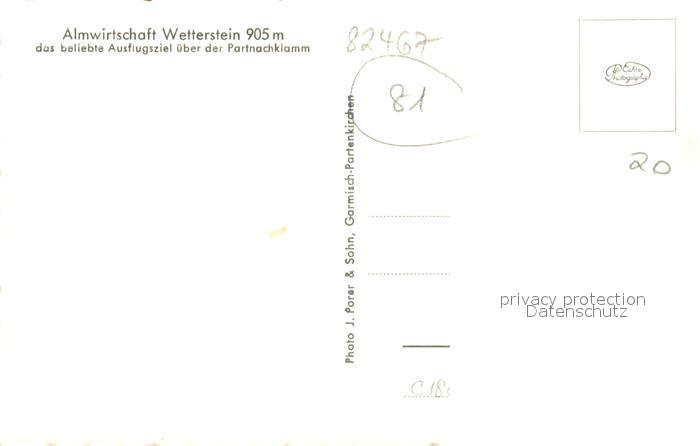 73644393 GARMISCH-PARTENKIRCHEN Bayern Almwirtschaft Wetterstein Ausflugsziel ueber der Partnachklamm Alpen postalisch nicht gelaufen Erhaltung siehe scans [FriedD77] KatCode: 11110009180117