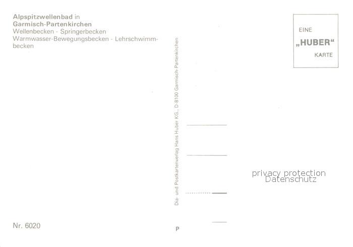 72959959 GARMISCH-PARTENKIRCHEN Bayern Alpspitzwellenbad Wellen und Springerbecken postalisch nicht gelaufen Erhaltung siehe scans [WerneD78] KatCode: 11110009180117