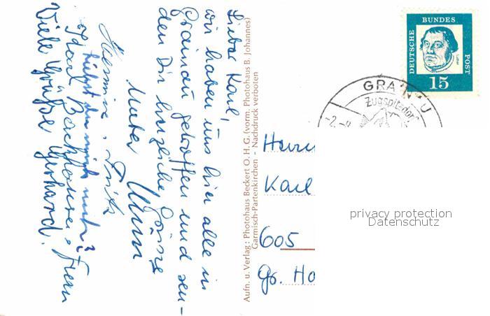 72771304 alte Postkarte GARMISCH-PARTENKIRCHEN Bayern An der Loisbach postalisch gelaufen Erhaltung siehe scans [AndreD76] KatCode: 11110009180117