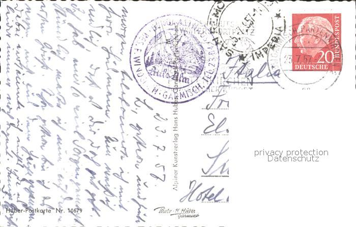 72261350 alte Postkarte GARMISCH-PARTENKIRCHEN Bayern Aulealm mit Zugspitze postalisch gelaufen Erhaltung siehe scans KatCode: 11110009180117