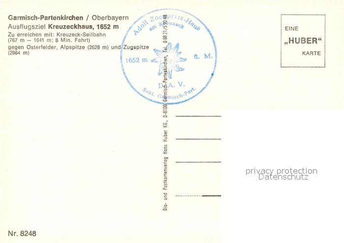 73043555 GARMISCH-PARTENKIRCHEN Bayern Ausflugsziel Kreuzeckhaus gegen Wettersteingebirge mit Zugspitze Huber Karte Nr 8248 postalisch nicht gelaufen Erhaltung siehe scans [FriedD77] KatCode: 11110009180117