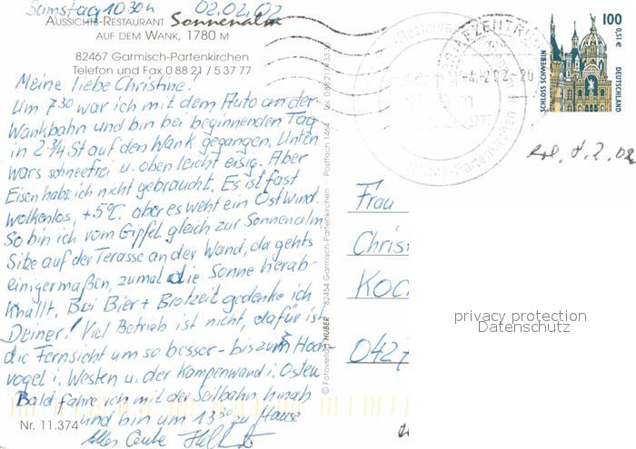 72799351 alte Postkarte GARMISCH-PARTENKIRCHEN Bayern Aussichtsrestaurant auf dem Wank Sonnenalm Fernsicht Alpenpanorama postalisch gelaufen Erhaltung siehe scans [FriedD77] KatCode: 11110009180117