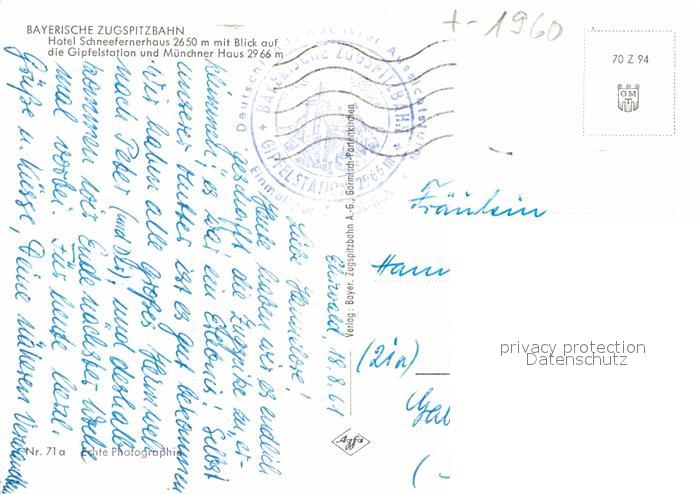 72898640 alte Postkarte GARMISCH-PARTENKIRCHEN Bayern Bayerische Zugspitzbahn Hotel Schneefernerhaus Muenchner Haus postalisch gelaufen Erhaltung siehe scans [PaolaD17] KatCode: 11110009180117