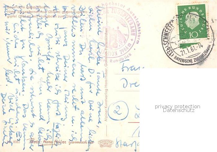 73125093 alte Postkarte GARMISCH-PARTENKIRCHEN Bayern Bayerische Zugspitzbahn Hotel Schneefernerhaus Zugspitzgipfel postalisch gelaufen Erhaltung siehe scans [PaolaD17] KatCode: 11110009180117