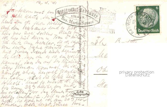 72792444 alte Postkarte GARMISCH-PARTENKIRCHEN Bayern Berggasthaus Eckbauer postalisch gelaufen Erhaltung siehe scans [AndreD76] KatCode: 11110009180117