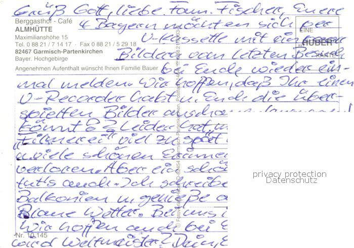 73109003 GARMISCH-PARTENKIRCHEN Bayern Berggasthof Almhuette postalisch nicht gelaufen Erhaltung siehe scans [NatalD47] KatCode: 11110009180117