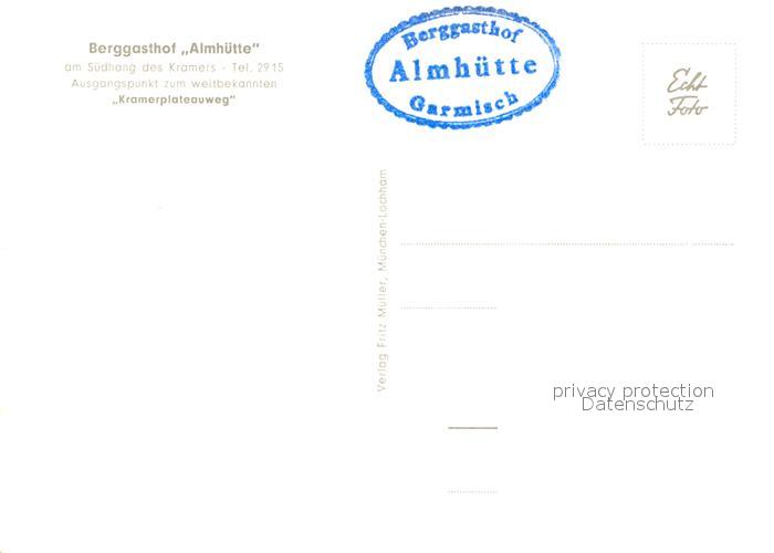 72957184 GARMISCH-PARTENKIRCHEN Bayern Berggasthof Almhuette postalisch nicht gelaufen Erhaltung siehe scans [PaolaD17] KatCode: 11110009180117