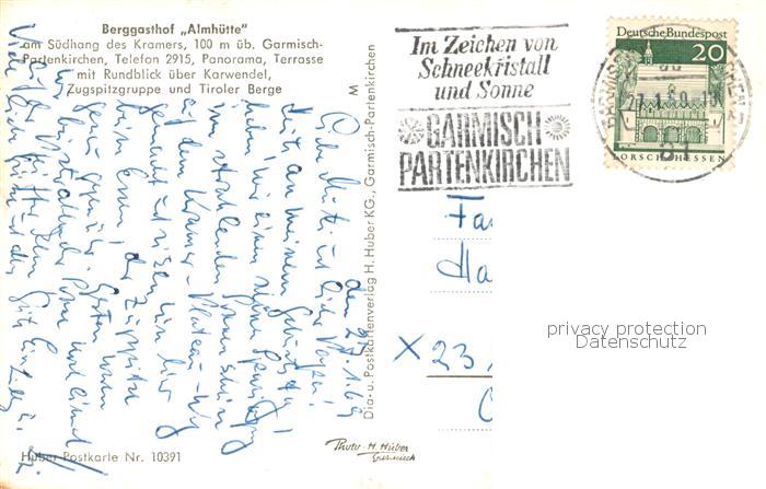 73761482 GARMISCH-PARTENKIRCHEN Bayern Berggasthof Almhuette postalisch gelaufen Erhaltung siehe scans [FriedD77] alte Postkarte Frie Katcode 11110009180117
