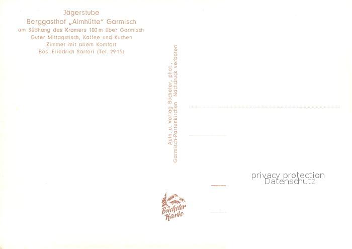 73055885 GARMISCH-PARTENKIRCHEN Bayern Berggasthof Almhuette Jaegerstube postalisch nicht gelaufen Erhaltung siehe scans [WerneD78] KatCode: 11110009180117