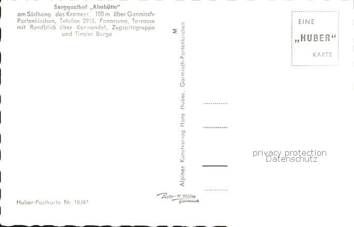 72518598 GARMISCH-PARTENKIRCHEN Bayern Berggasthof Almhuette Winter postalisch nicht gelaufen Erhaltung siehe scans KatCode: 11110009180117