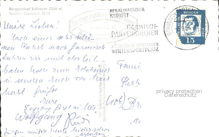 72296697 alte Postkarte GARMISCH-PARTENKIRCHEN Bayern Berggasthof Eckbauer postalisch gelaufen Erhaltung siehe scans KatCode: 11110009180117