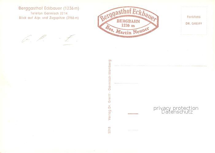 73080502 GARMISCH-PARTENKIRCHEN Bayern Berggasthof Eckbauer Alpspitze Zugspitze Wettersteingebirge postalisch nicht gelaufen Erhaltung siehe scans [FriedD77] KatCode: 11110009180117