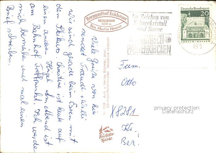 72525734 alte Postkarte GARMISCH-PARTENKIRCHEN Bayern Berggasthof Eckbauer Sonnenterrasse postalisch gelaufen Erhaltung siehe scans KatCode: 11110009180117