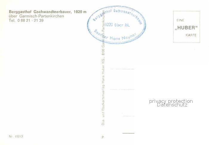 72693913 GARMISCH-PARTENKIRCHEN Bayern Berggasthof Gschwandtnerbauer Hochblassen Alpspitze Zugspitze postalisch nicht gelaufen Erhaltung siehe scans [NatalD47] KatCode: 11110009180117