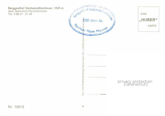 72740908 GARMISCH-PARTENKIRCHEN Bayern Berggasthof Gschwandtnerbauer postalisch nicht gelaufen Erhaltung siehe scans [LiesaD40] KatCode: 11110009180117